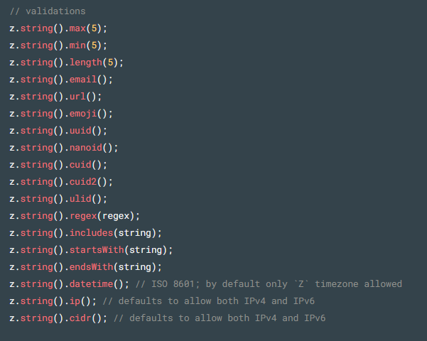 email: z.string().email('잘못된 이메일 주소').nonempty('이메일은 필수 요소'),