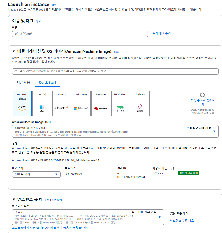- 운영 체제 선택: Linux, Windows, Ubuntu 등 다양한 운영 체제를 선택할 수 있습니다.