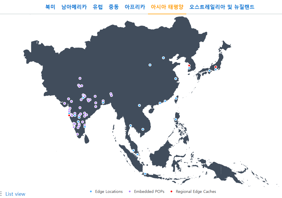 AWS는 전 세계에 수백 개의 엣지 로케이션을 운영하고 있습니다. 엣지 로케이션은 AWS의 콘텐츠 전송 네트워크(CDN) 서비스인 Amazon CloudFront를 지원하기 위해 사용됩니다.