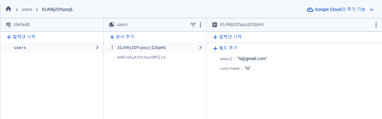 firestore.collection("users") //여기서! 컬렉션 이름과 같아야합니다