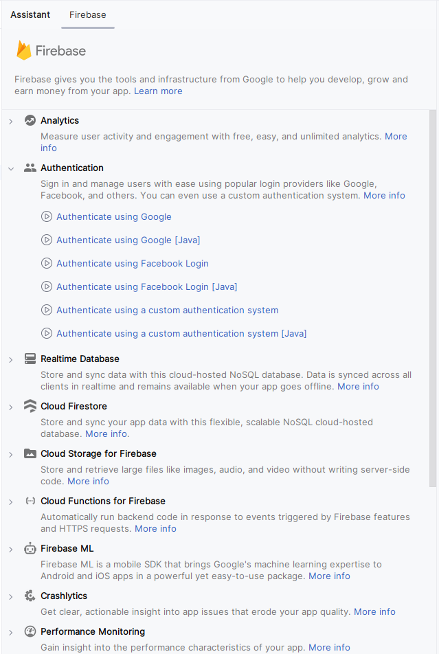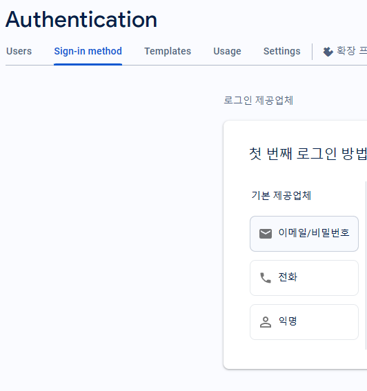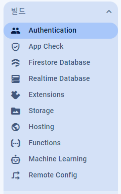 그럼 오른쪽에 Firebase에 관련된 목록들이 나타날 것입니다.