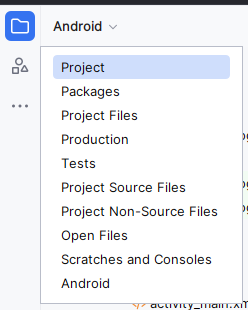 안드로이드 스튜디오로 돌아가면 상단에 Android 하고 아래 화살표가 있습니다.