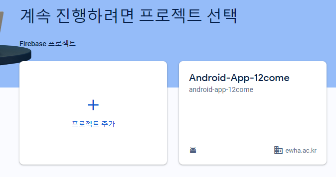 그럼 창이 열리면서 Firebase의 콘솔창이 뜰 것입니다. 제 프로젝트에서 사용하는 파이어베이스도 보이네요😝