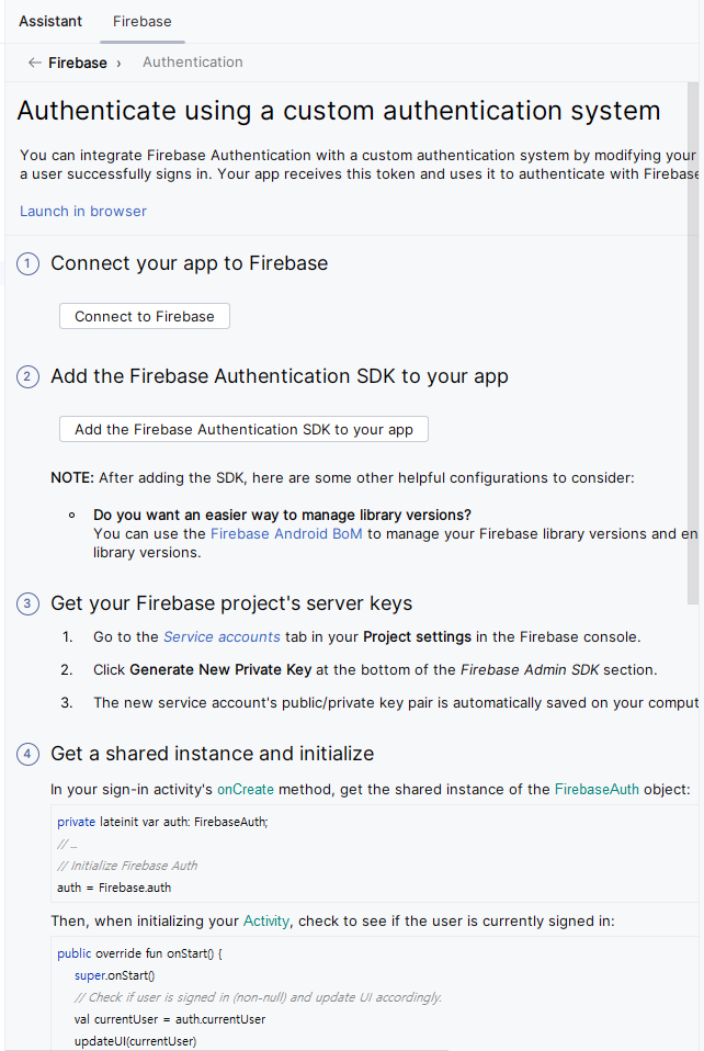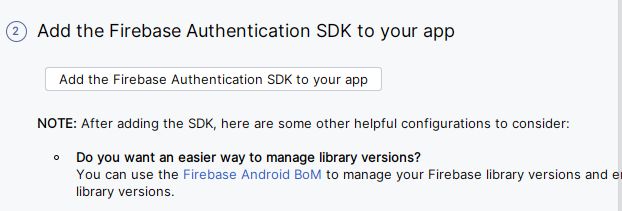 Add the Firebase Authentication SDK to your app 버튼을 누릅시다!