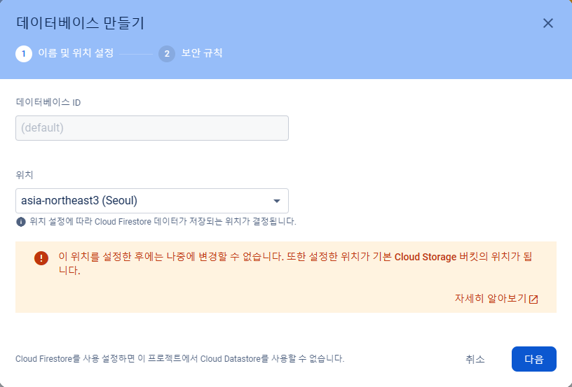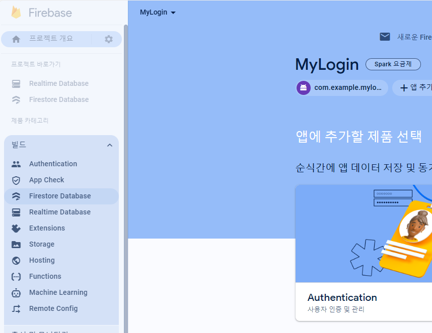 그럼 왼쪽에 빌드 안에 Firestore Database를 클릭해 줍니다.
