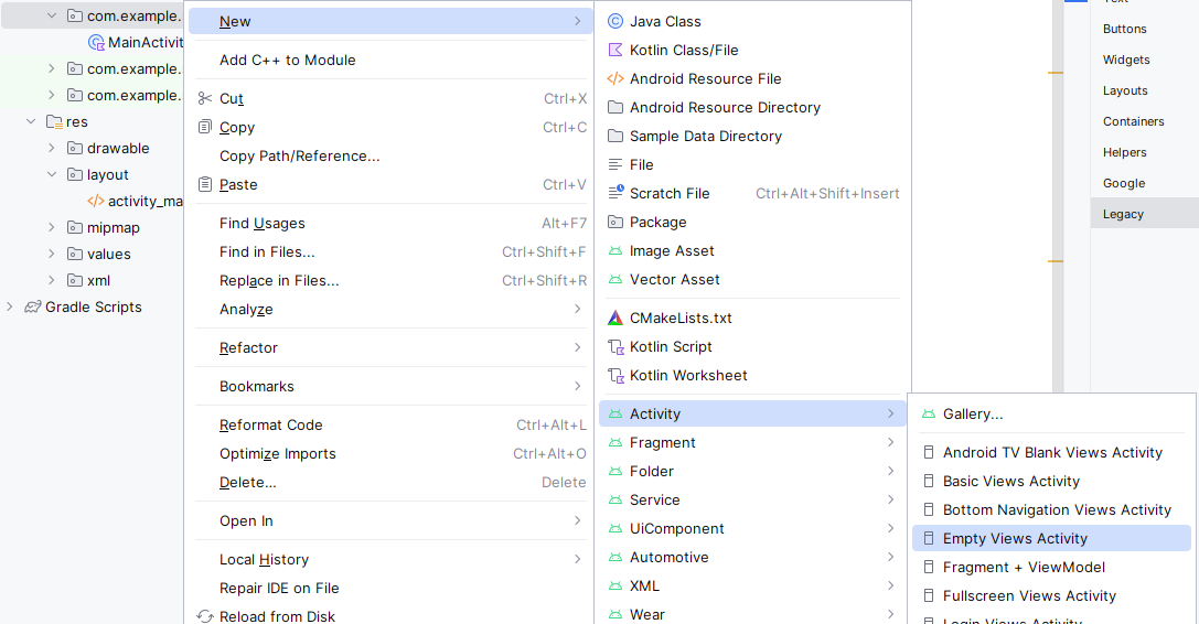 무조건!!!!!! Empty View Activity입니다. Empty Activity 아닙니다!😂