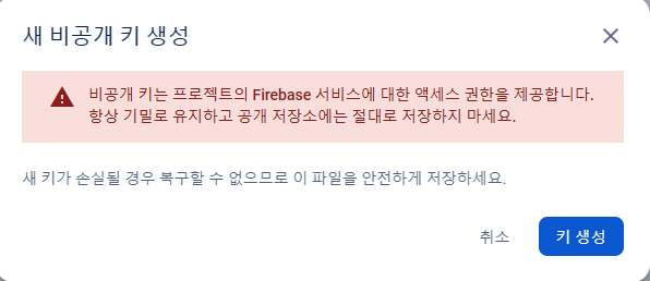 아래 새 비공개 키 생성 버튼을 누릅시다!