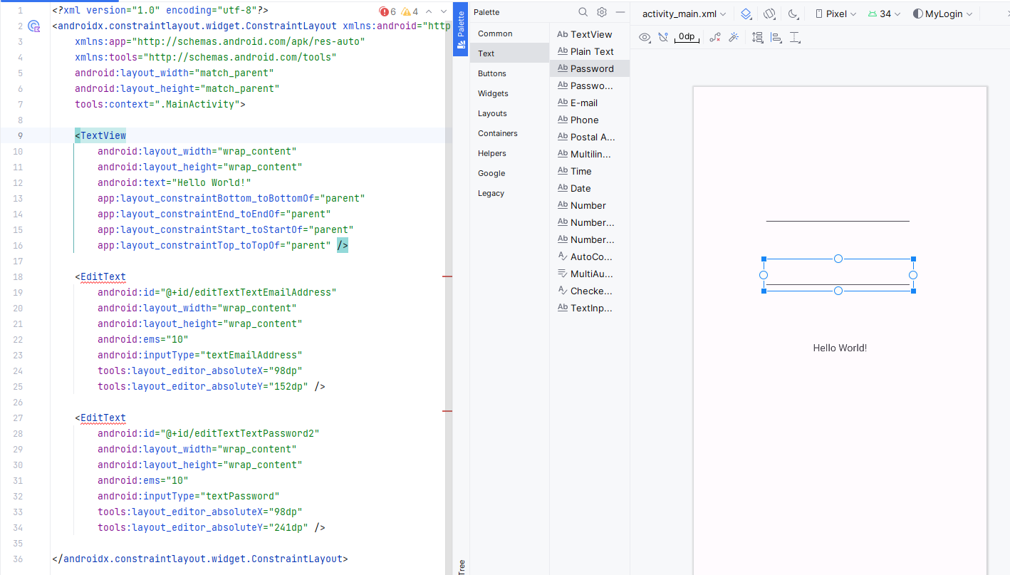 val password = findViewById<EditText>(R.id.editTextPassword).text.toString()